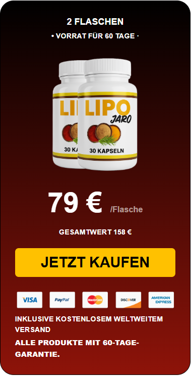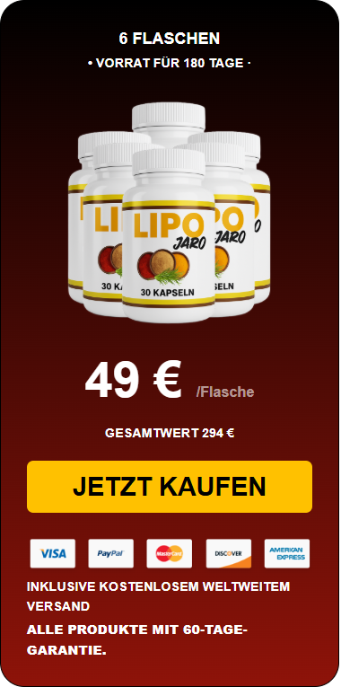Nur jetzt: LipoJaro mit 72 % Rabatt + kostenlosem Versand sichern! Dieses streng limitierte Angebot gilt nur für kurze Zeit und endet bald.